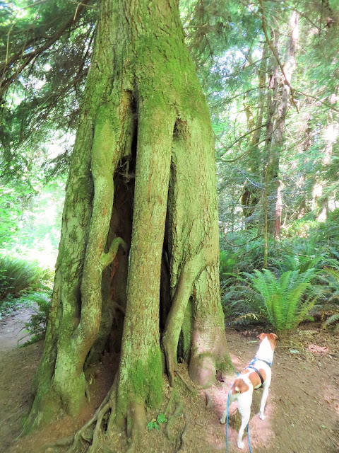 D'light loves to work cedar trees - he's chased many a critter up these trees