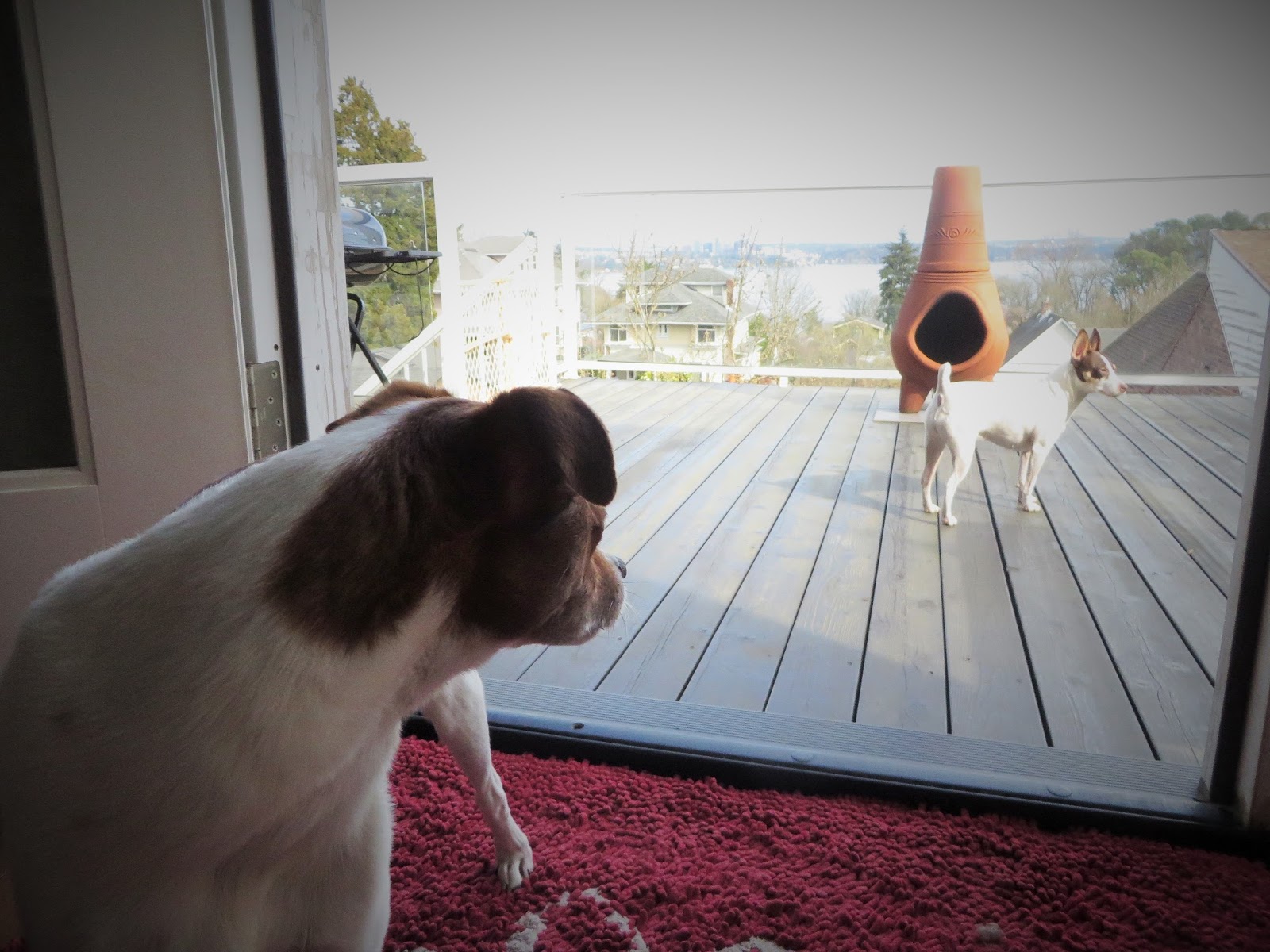 While Viva knows the above cues, we haven't practiced them out on the deck in a good while. We use the cues a lot when we are out and about but, dog don't generalize well so that means we need to practice the cues on the deck since it's a different environmental set up.